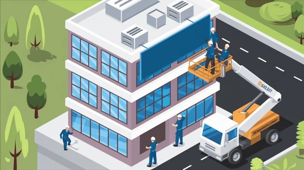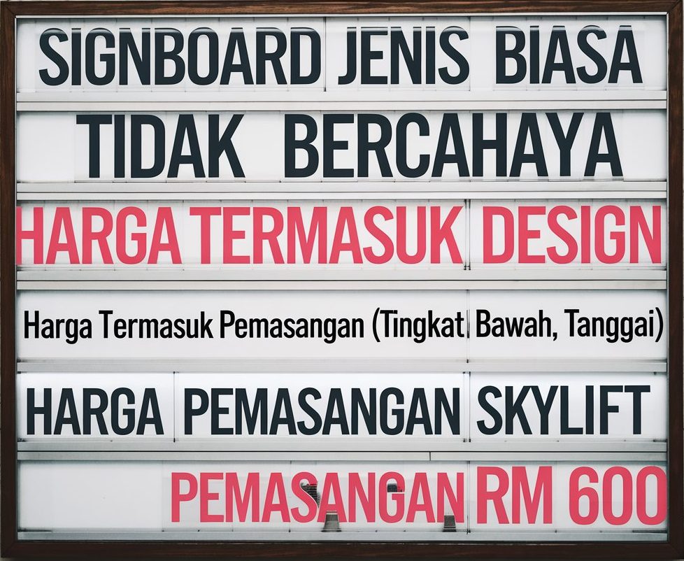 Kami menawarkan harga berpatutan untuk pemasangan segala jenis signboard. Termasuk pengunaan skylift untuk pemasangan tingkat tinggi.